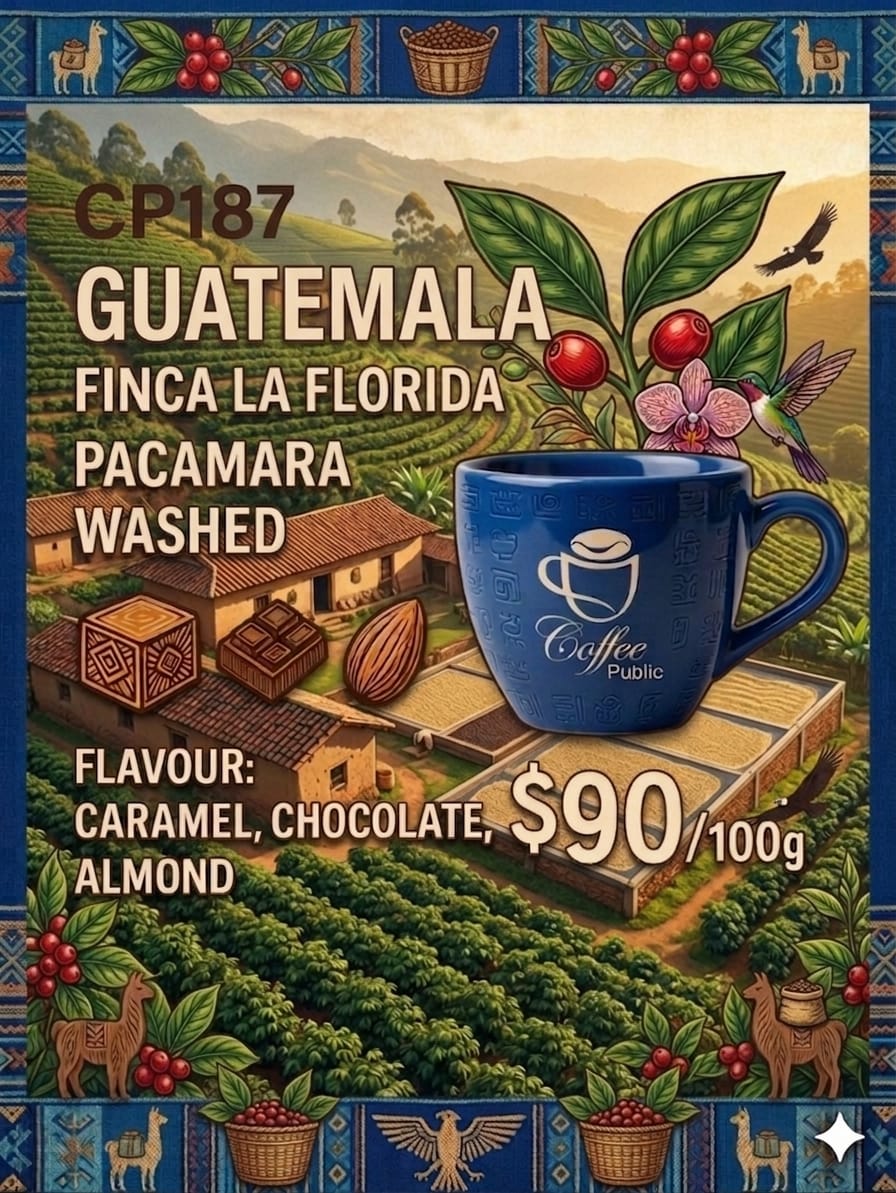 CP187 瓜地馬拉 佛羅里達 帕卡馬拉特級水洗 產地客製批次咖啡豆($90/100g)